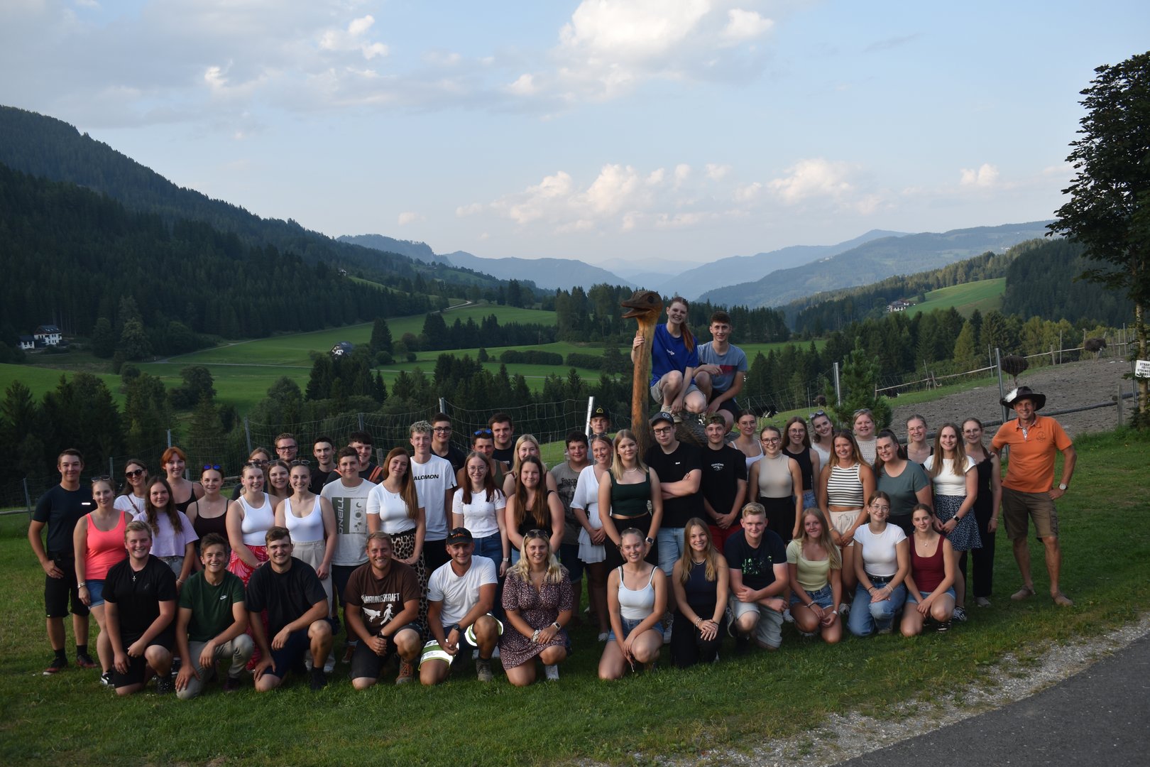 Im Rahmen unserer zweiten Agrarexkursion am 13. August besuchten rund 55 Teilnehmerinnen und Teilnehmer den Straußenhof Wallner in St. Blasen. Ziel der Exkursion war es, einen praxisnahen Einblick in eine besondere Form der landwirtschaftlichen Tierhaltung zu gewinnen.