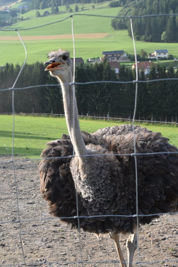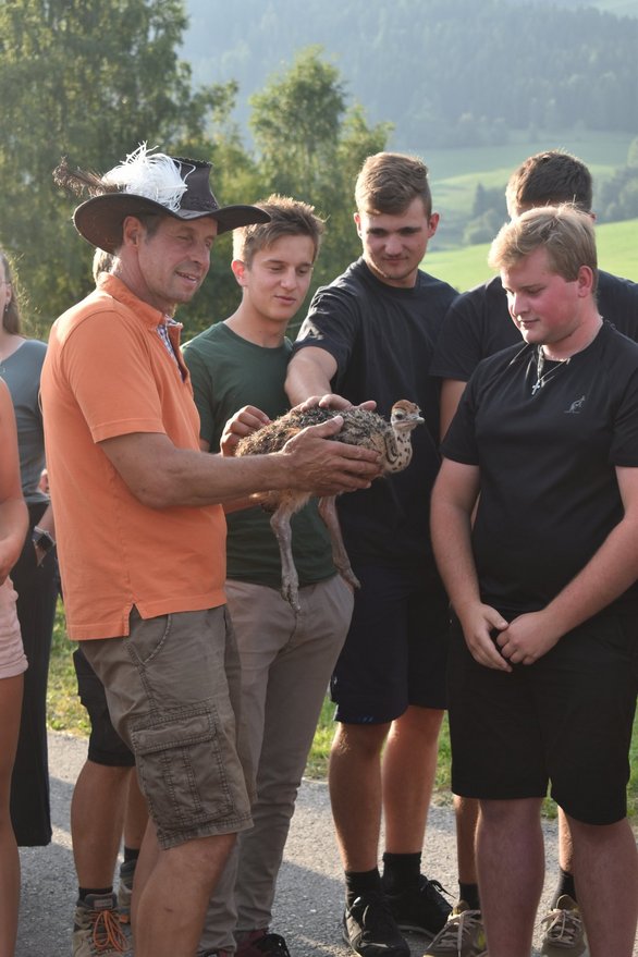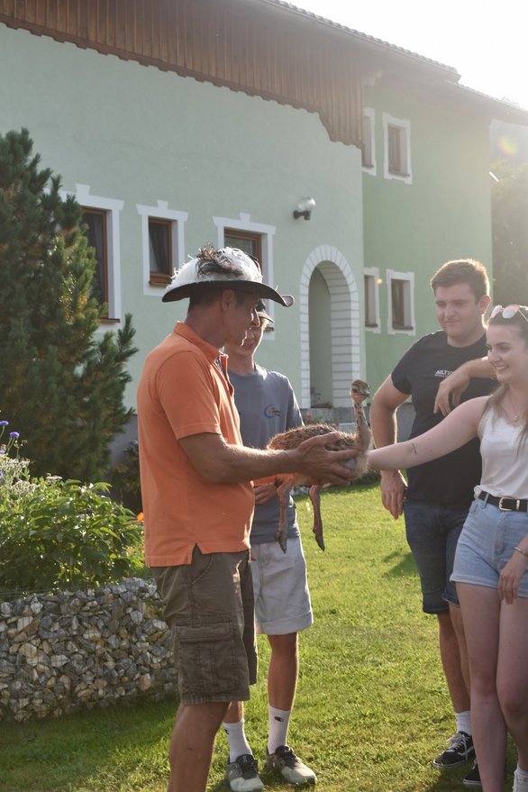 Die Familie Wallner führte die Gruppe durch ihren Betrieb und vermittelte umfangreiche Informationen über die Straußenzucht. Themen wie artgerechte Haltung, Körperbau, Paarungsverhalten und Aufzucht der Tiere wurden ebenso behandelt wie die vielfältigen Möglichkeiten der Vermarktung von Straußenprodukten – von Fleisch über Federn bis hin zu Eiern.